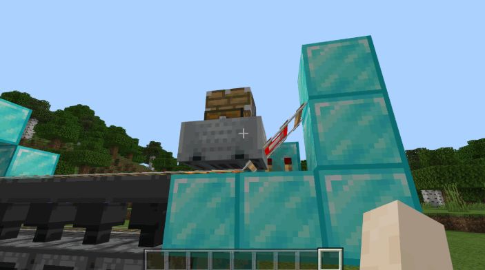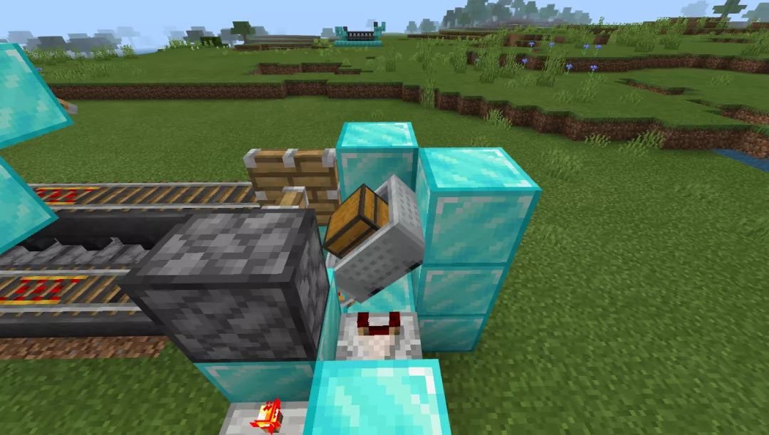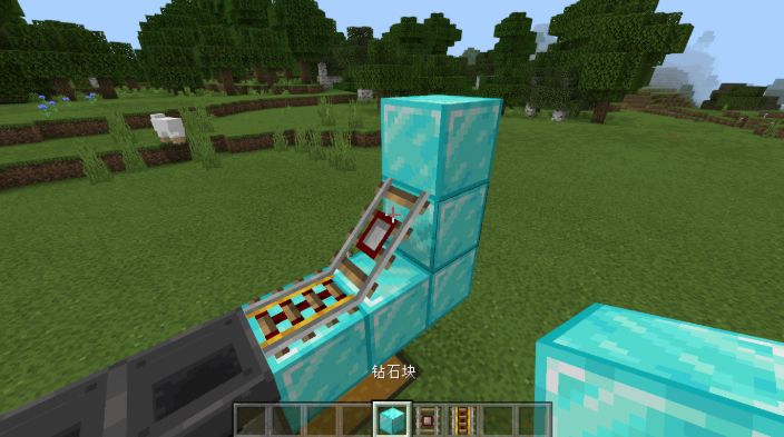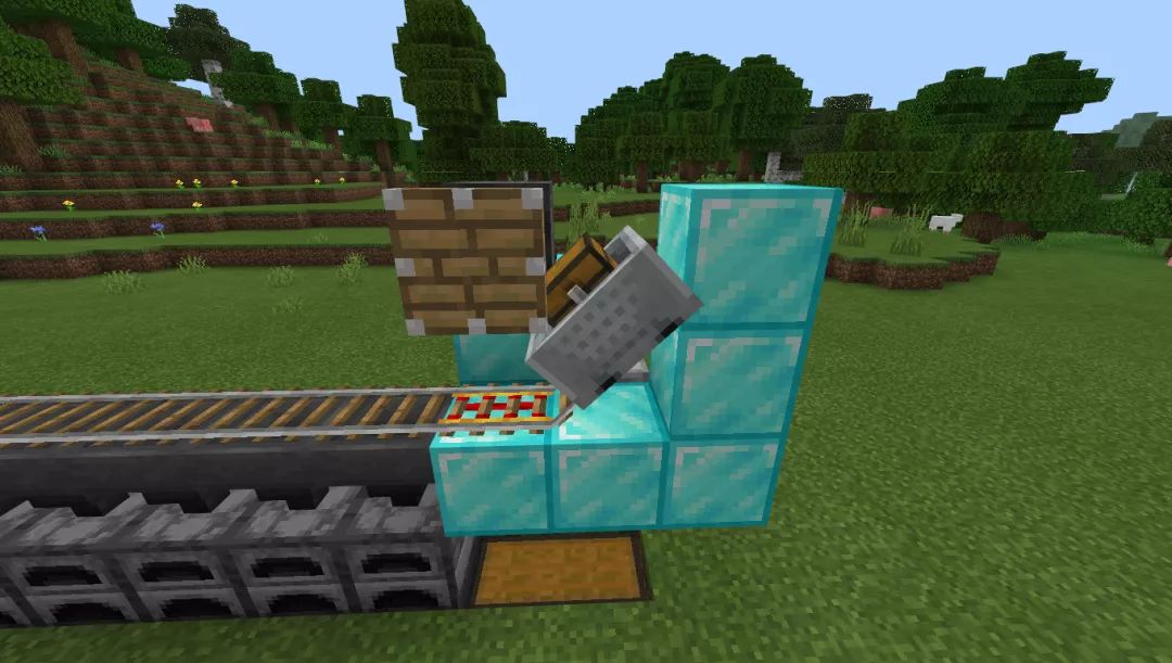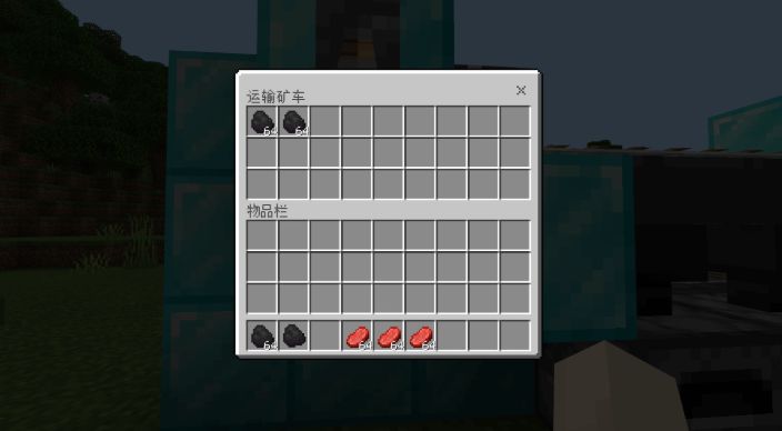 最后在探测铁轨上放置一个运输矿车,这样输送烧制物的部分就做好了