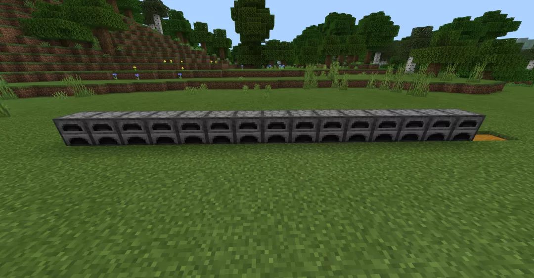 在这一排漏斗上方放置熔炉,并在熔炉后方和上方再放置一排朝向熔炉的漏斗