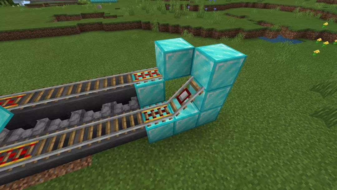 接下来使用普通铁轨和动力铁轨铺设在后方的漏斗上