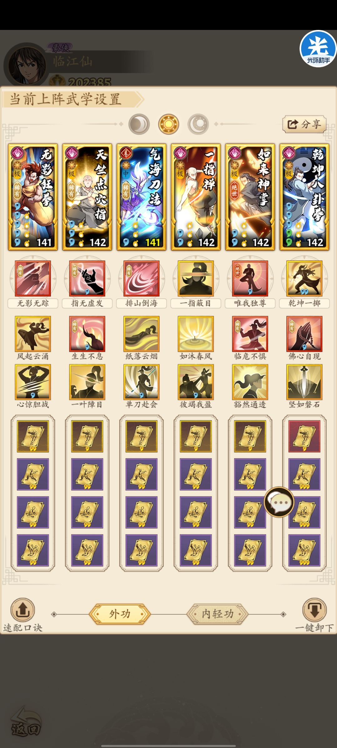 2,气海的位置可跟天竺更换,这套主打后手(双卡卷不起聚气,我索性放弃了普通轻功的心愿,直接拉金钟,至于对方先手控制,目前没有更好的想法,只能靠云体解,等待铜人门的风魔)