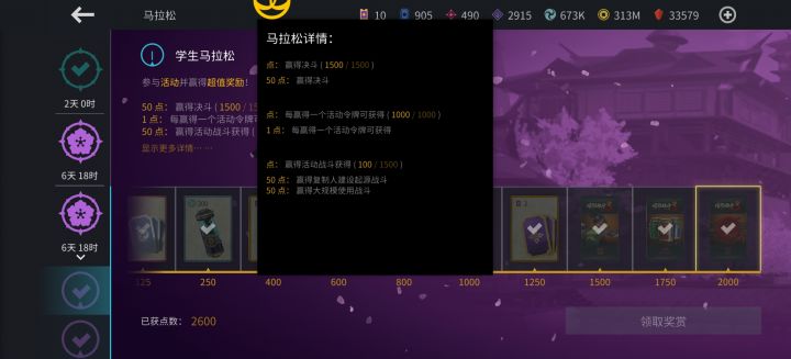 第二个是学生、助手、大师马拉松为连环马拉松,具体内容看图,还是要注意前面两个马拉松留着活动金币不要乱花。