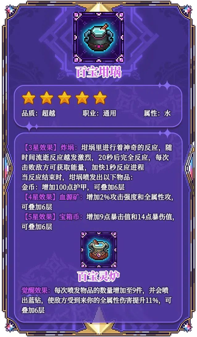 水异闻(火位面PLUS):提供12%的攻强以及属功增幅、54暴击值(在忍者天赋的转化下变成5.4暴伤)、84暴伤、66%属性易伤。