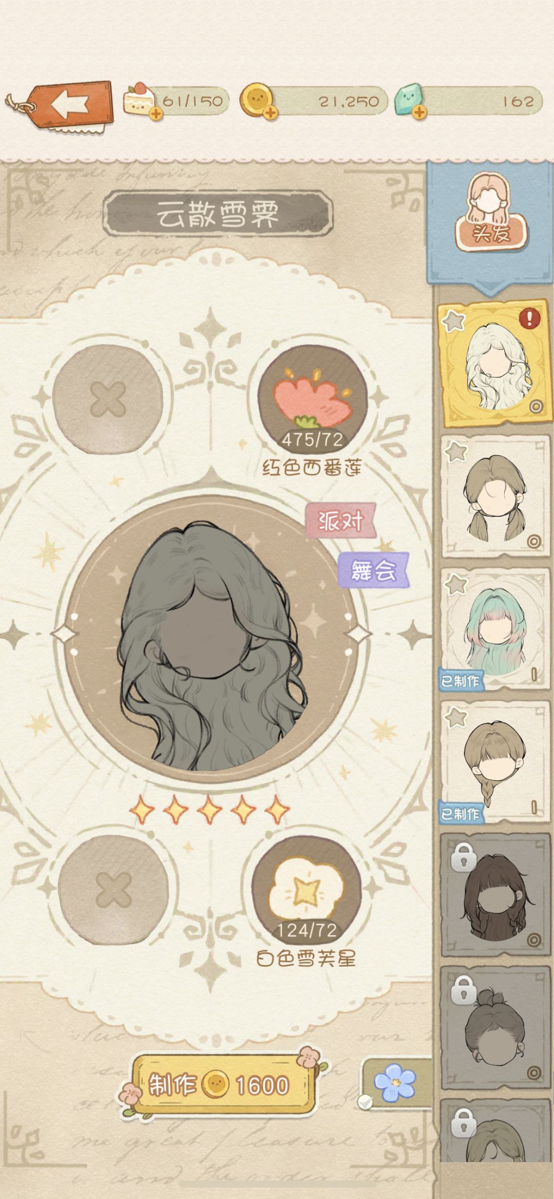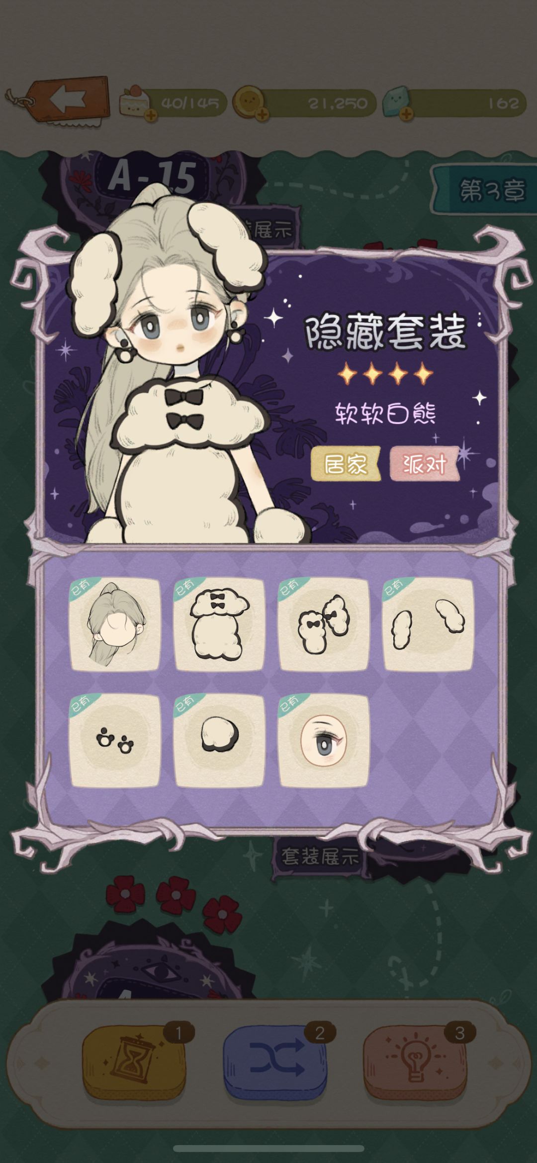 每个大关卡有一个套装的设计稿,为了丰富闯关,必须要把这一大关的套装制作出来才可以开启下一关;