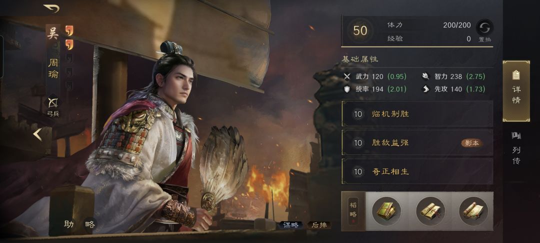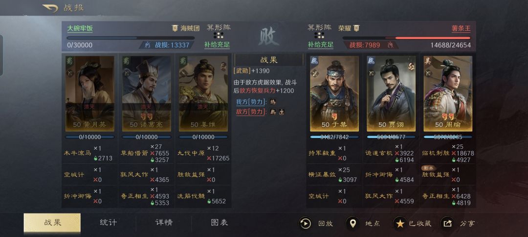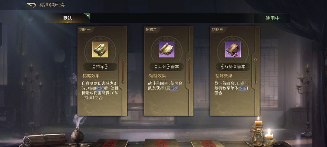 贾诩战法:诡道玄机+折冲御侮+狂风大作。韬略库:略地善本+料敌善本+诡道(专属)。