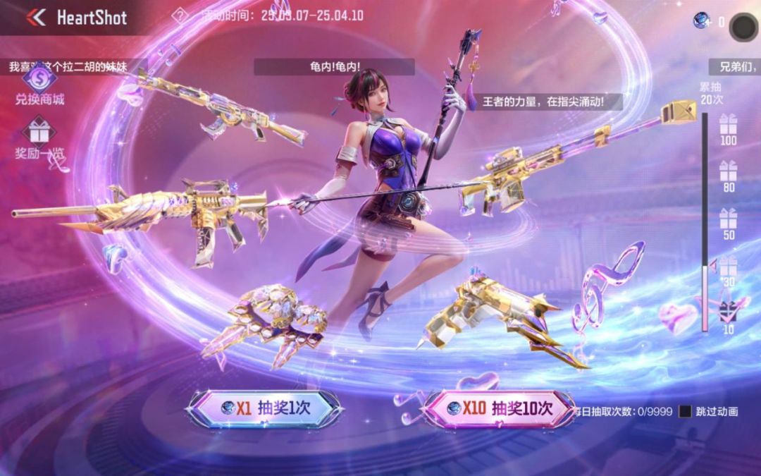 在HeartShot夺宝活动中,不仅有虹儿角色、HeartShot皮肤等丰厚奖励等你来拿,兑换商城更是惊喜连连,2021年S1赏金令首发的王者级别副武器——沙鹰系列中的佼佼者王者之电,强势返场!只需300枚HeartShot兑换币,你就能将这把威力与颜值并存的神器收入囊中!