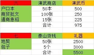 表格红六,理论上只买人口,其他东西查漏补缺用,个人比较喜欢买通商急诏跟商贸批文,市集的摊位升级特别缺,而通商急诏既能拿铜币,又能拿商贸批文,商贸批文缺的族长,可以看我之前发的通过拉顾问来极限通商,快速获取商贸批文。