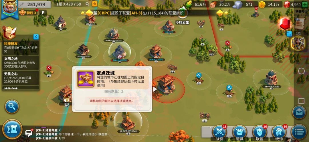 定点迁城和领土迁城在地图任何一个地方都放不下去主城,一直提示要占领关卡或者放到联盟领土。