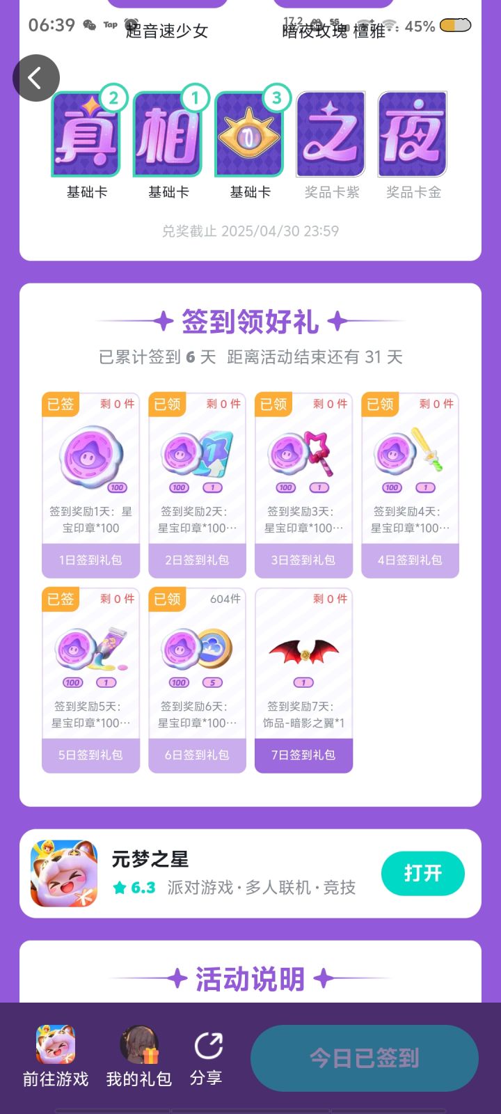 没有之前的截屏,但是我隐约记得第六天原本就只有600多个,第七天也是600多个,除了领签到礼包还有别的方式签到吗。
