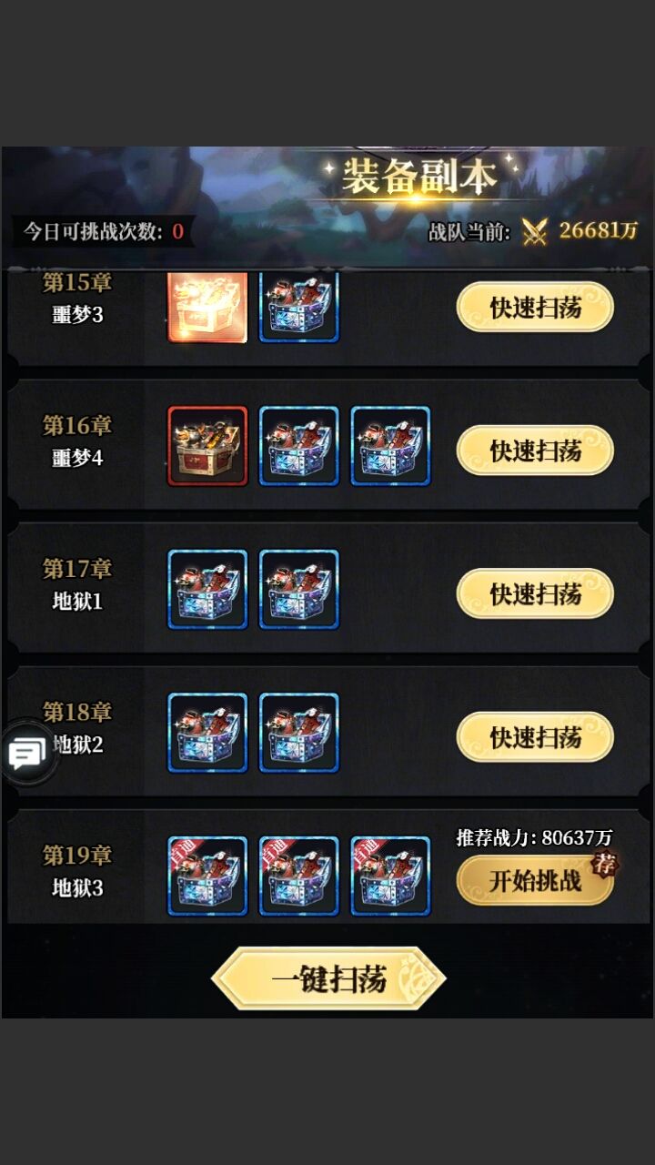由于装备副本关卡并没有其它限制,