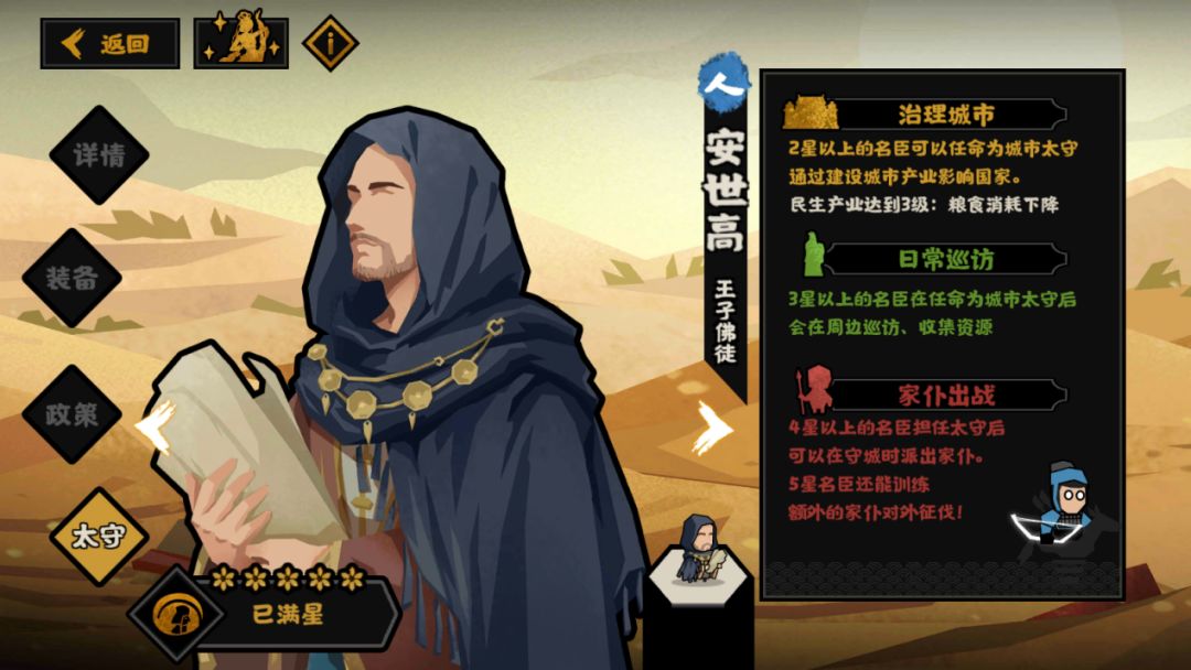 总结:安世高算是第二位和【经书】有关的名臣,且目前【经书】由之前的特殊buff改成了特殊资源,也意味着,未来可能会引入其他消耗经书的名臣,因此存在一定的潜力哈。