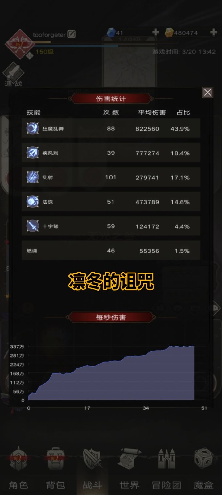 战斗中凛冬增伤的覆盖率≈45%(蓝的概率只有22.5%,所以每次战斗波动很大)