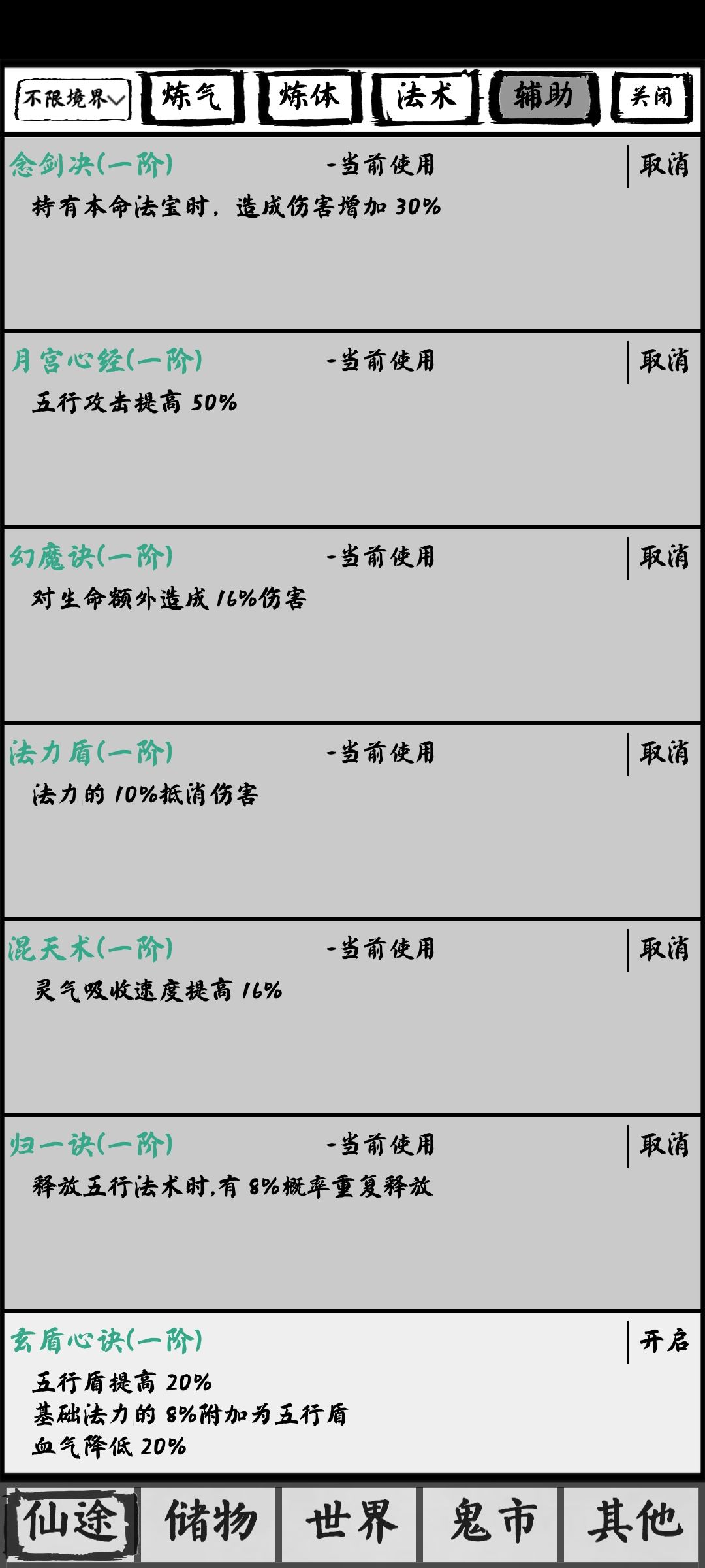 辅助功法选择 刷图打架把归一决改为凝甲术