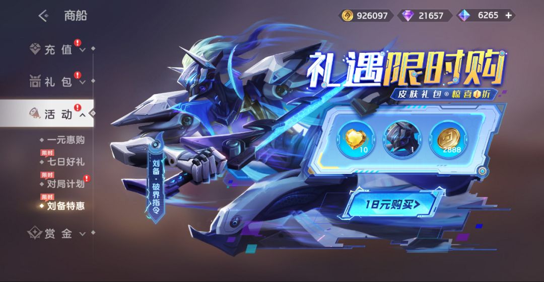 刘备·破界指令皮肤礼包限时1折!