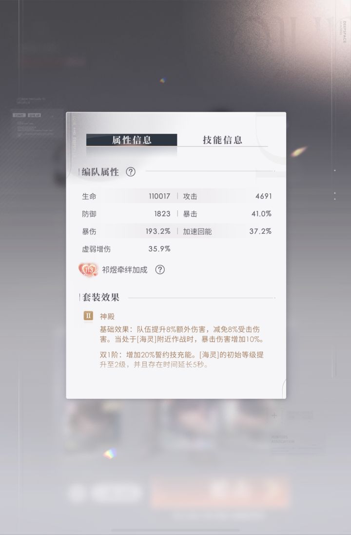注意事项:使用专武的情况下,一阶神殿套主堆生命值+加速回能+暴击+爆伤,要注意月卡芯核词条的搭配(这套我的回能有点慢,会卡手,升级芯核一定要优先升级加速回能)