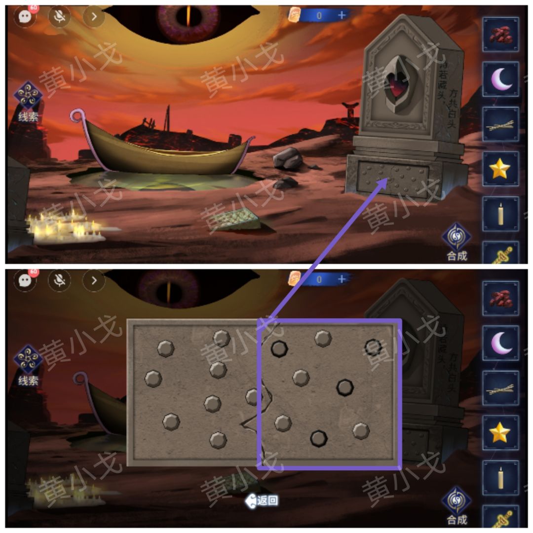3.点击石碑上的机关,机关右侧是固定的,告诉男主