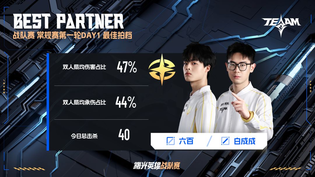 · 昨日战队赛揭幕战的比赛,琢光、剑鸣和揽月三支队伍犹如破竹之势,展现了令人惊叹的实力与卓越的技巧。他们凭借出色的个人能力和无间的团队协作,一路披荆斩棘,成功为自己积一胜场分。· 而对于嚣张、SC和JC而言,尽管他们首日失利但之后的比赛还充满了无限可能。只要继续努力,抓住每一个机会,他们仍然有机会再创辉煌!· 今日,另外6支战队将浴血厮杀,争夺珍贵的进入总决赛的机会。这一刻,不仅是对他们技艺的考验,更是对意志力的终极挑战。让我们一同屏住呼吸,见证这一激动人心的时刻,看哪支战队能够在这场巅峰对决中脱颖而出,成为最后的赢家。最佳拍档