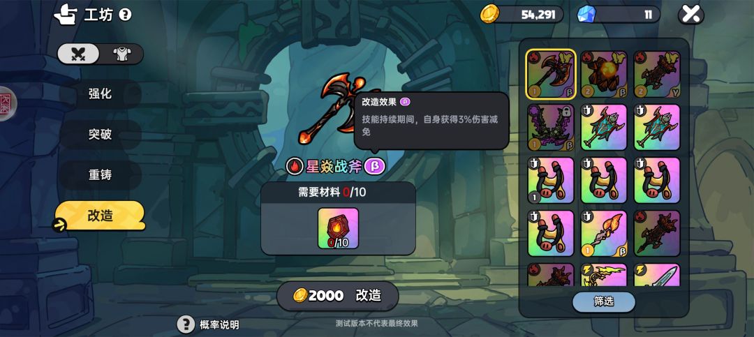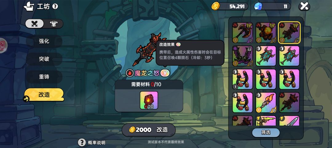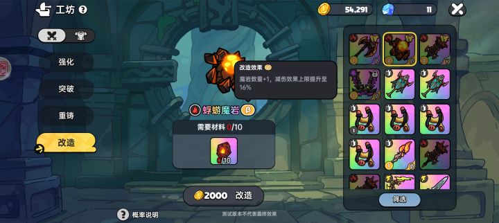 岩魔有两个可以选择,一个是火焰伤害,一个是增加球球,如果三把武器都有那就火焰伤害,只有阎魔和大剑那就选球球,大剑必须是陨石,斧头最好是冷却减少。这已经算是比较简单的玩法了,除了大剑可能需要点运气,实在不行全金也是可以的。