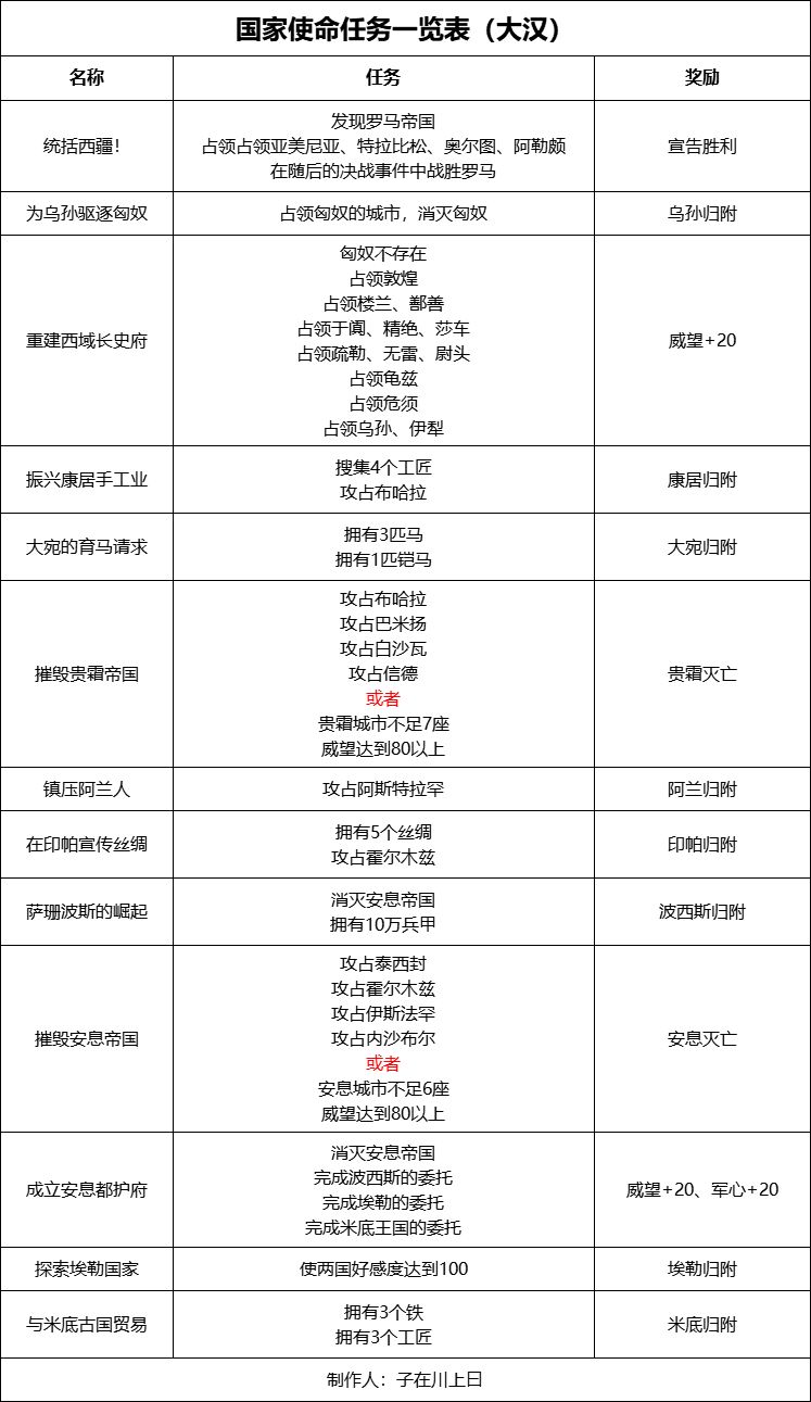 大汉具体国家使命任务可见下表: