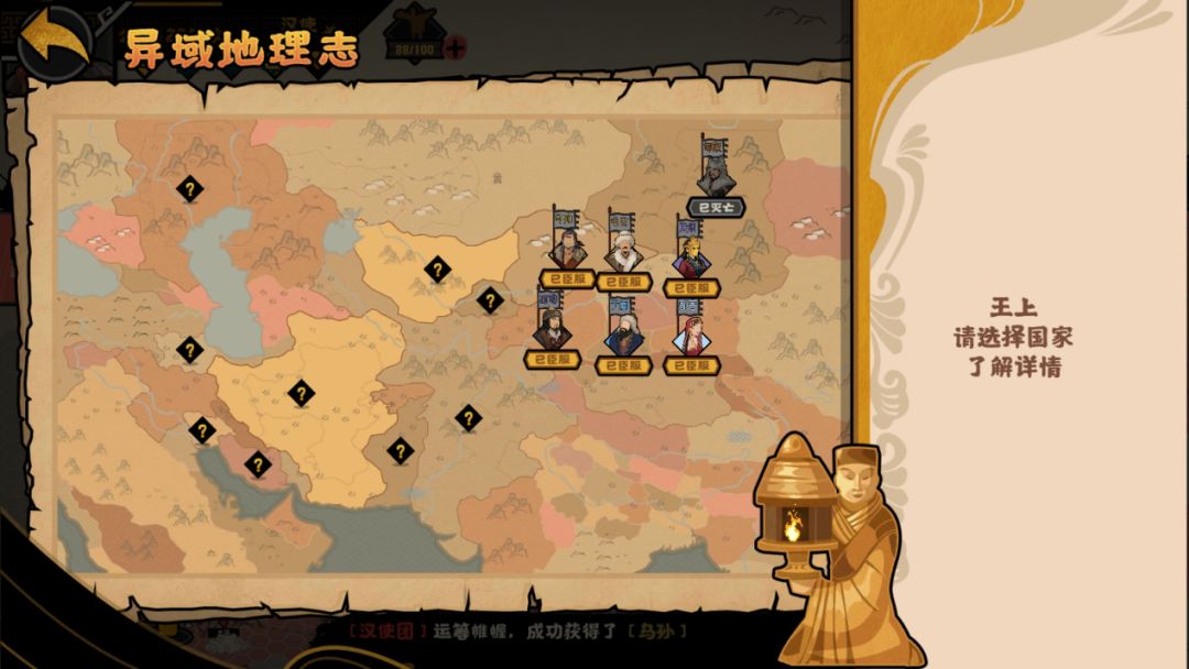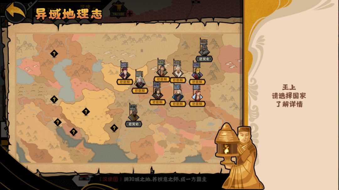 这时候打开你的异域地理志,便能看到本次汉与罗马剧本路途中所遇到的国家啦~