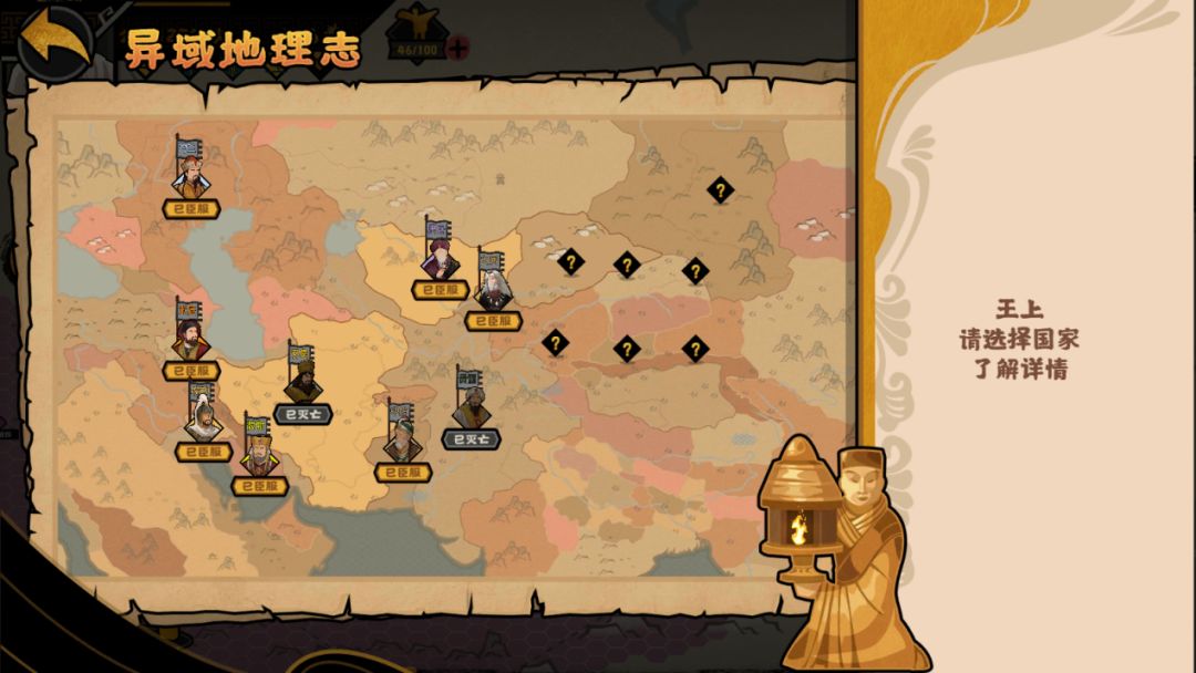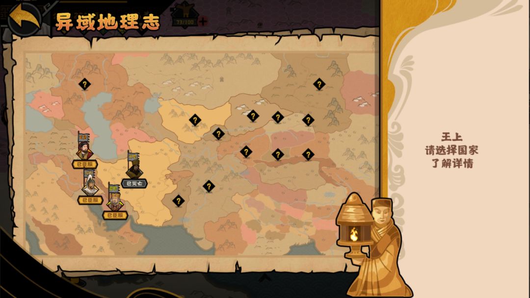 异域地理志玩法:在【国家使命】玩法中,完成邦国委托,可以收服西域小国,并使用他们的子弟兵卡牌进行战斗。