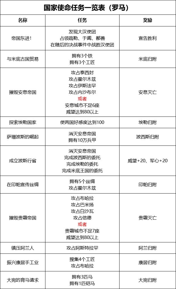 本次汉与罗马,罗马一方一共需要覆灭的势力有安息、贵霜,加之最后需要决战的大汉。所以根据探索先后顺序,分为三个阶段进行讲解。