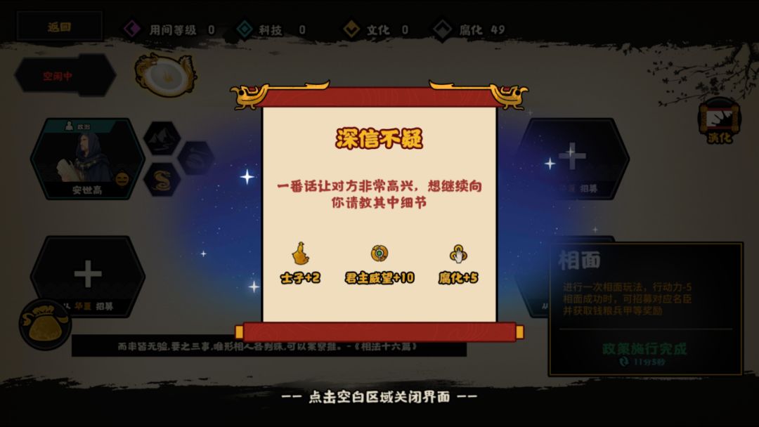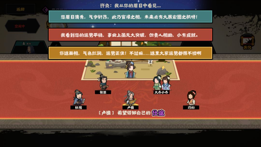 加之相面要对自己需要的名臣的小人黑影有一定的熟悉,且有概率失败,所以还需要一定的运气。