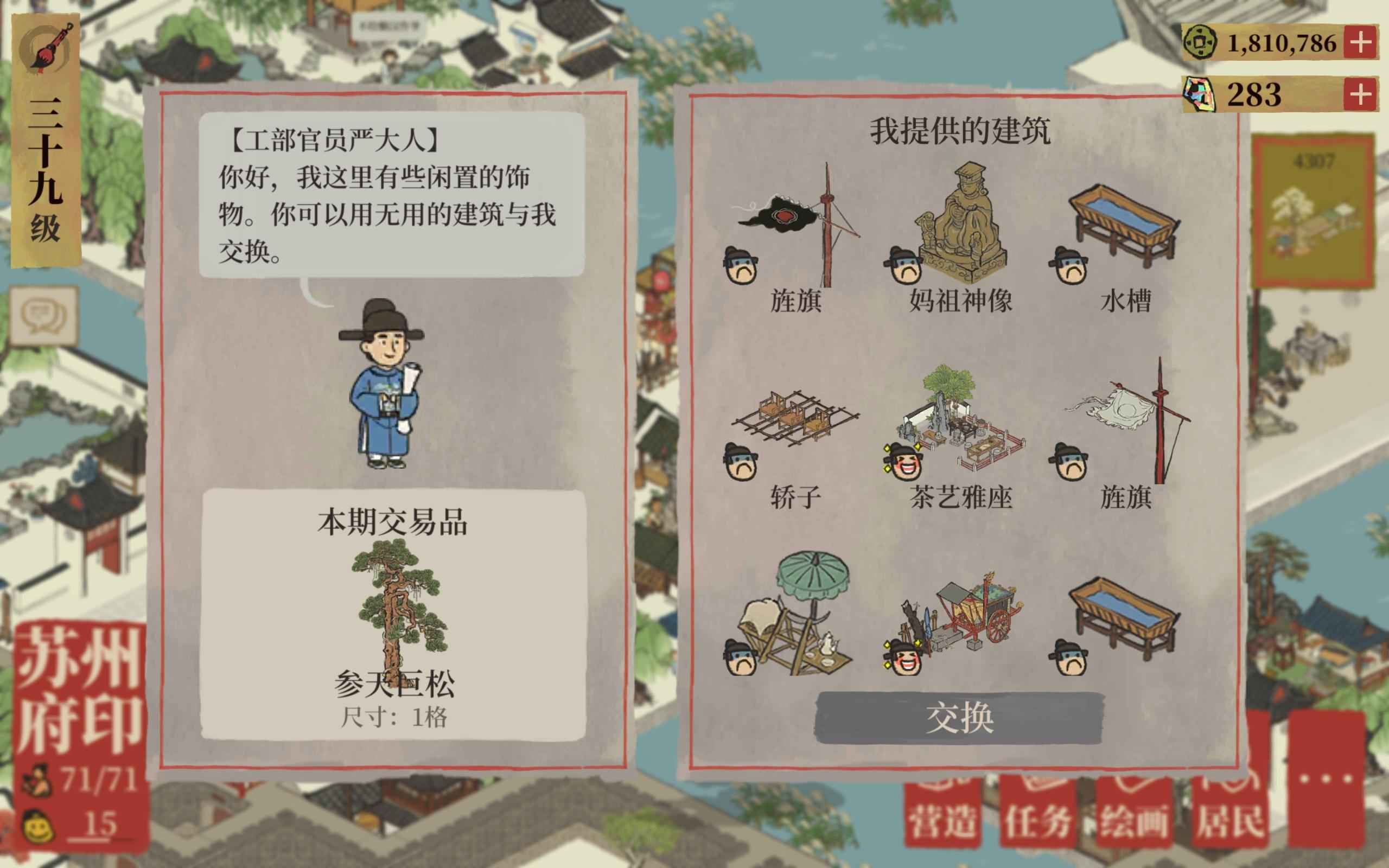 由于本大人最近以抓严大人为目标,明确记得今天下午四点十几分,用苏州的三个花灯台,一个勾栏,一个四级瓷器店换了参天巨松。然后升到了39级,在应天建造了油厂。就这两个操作完就下线了。