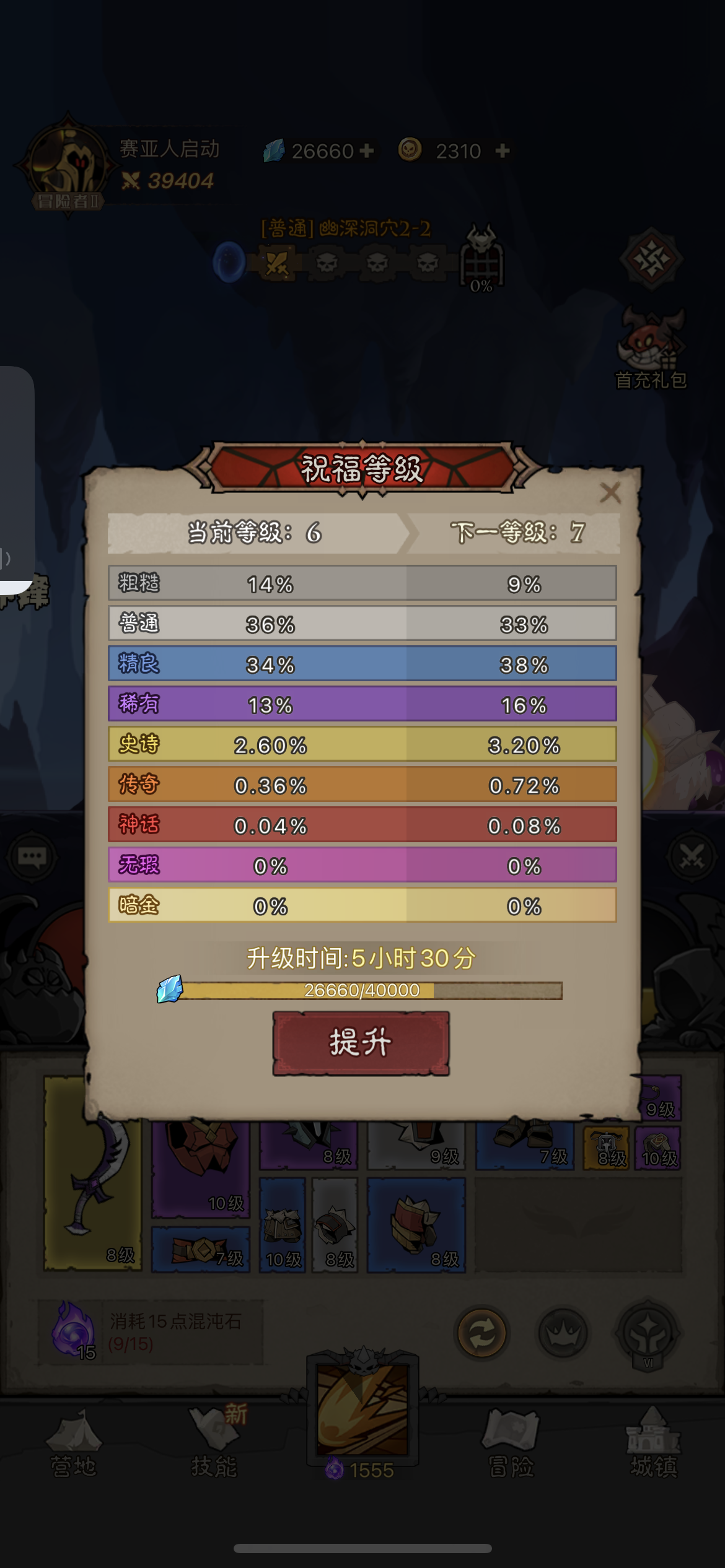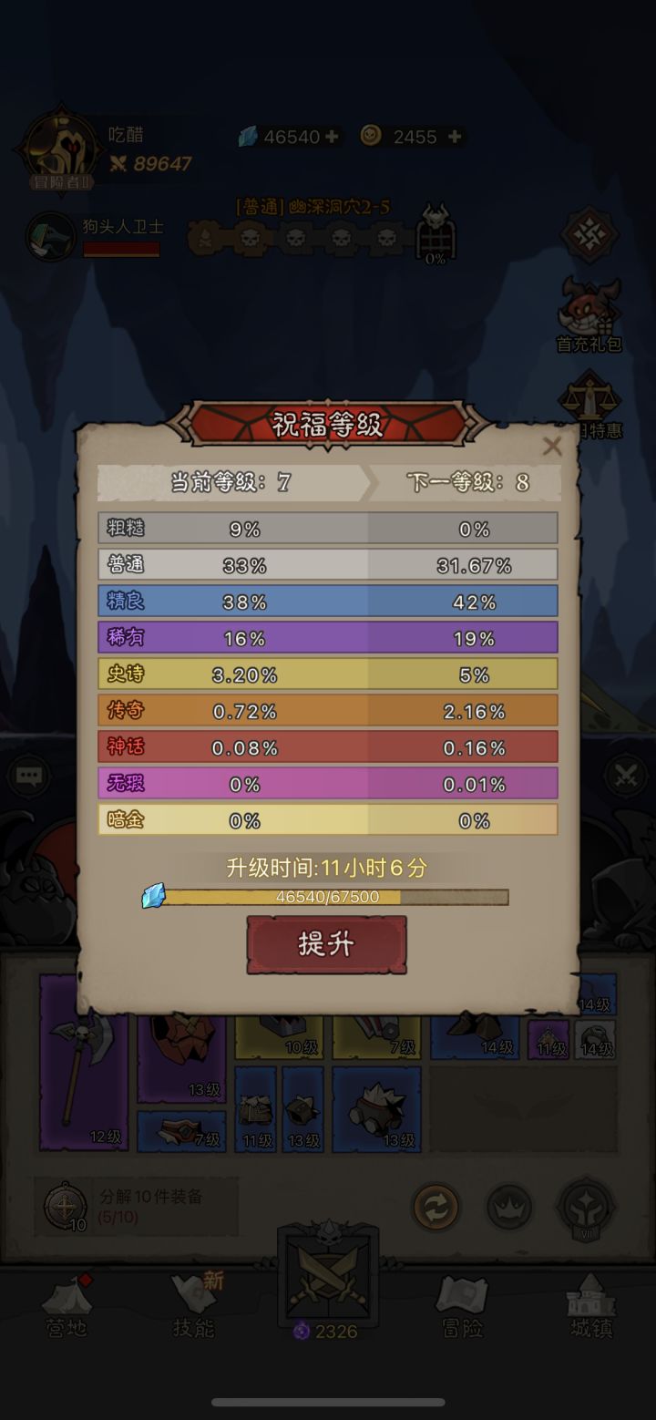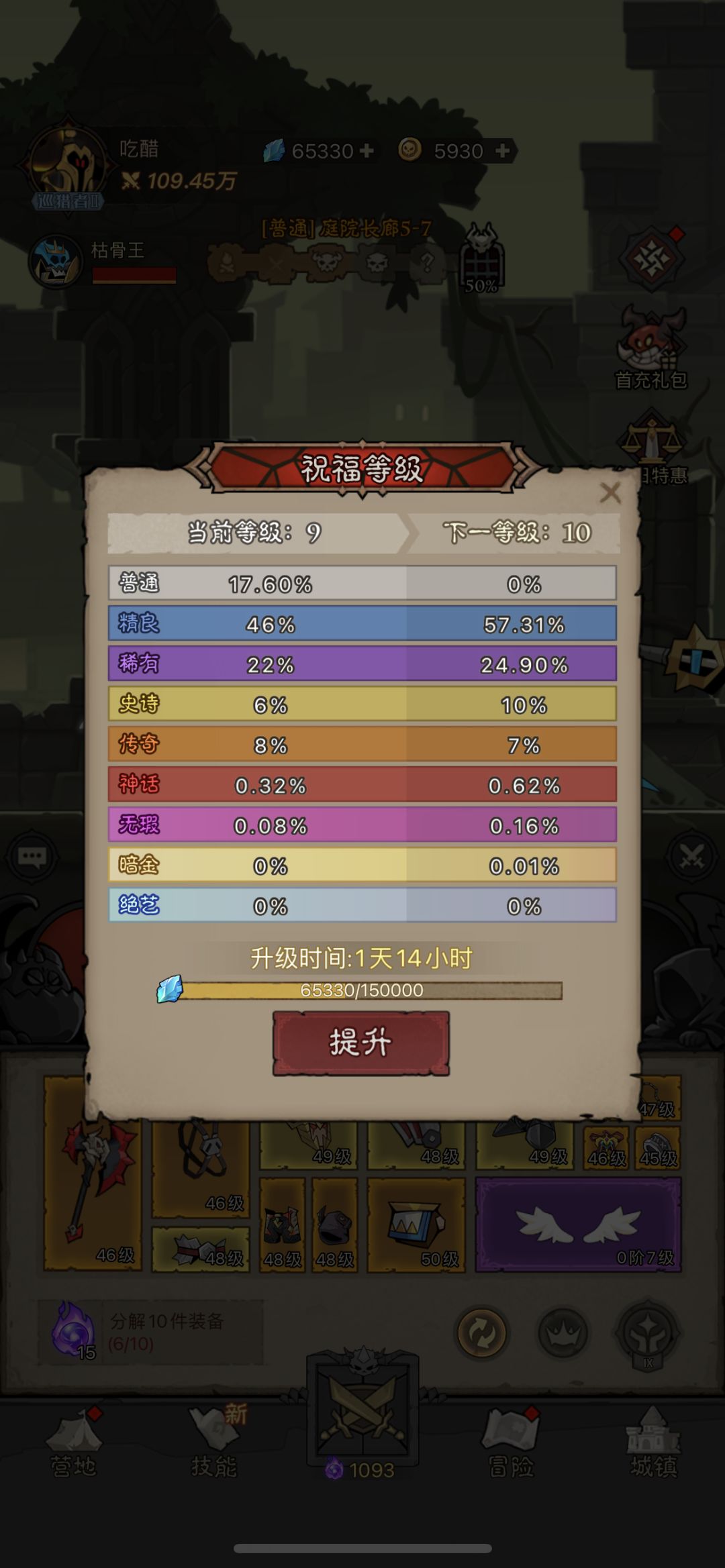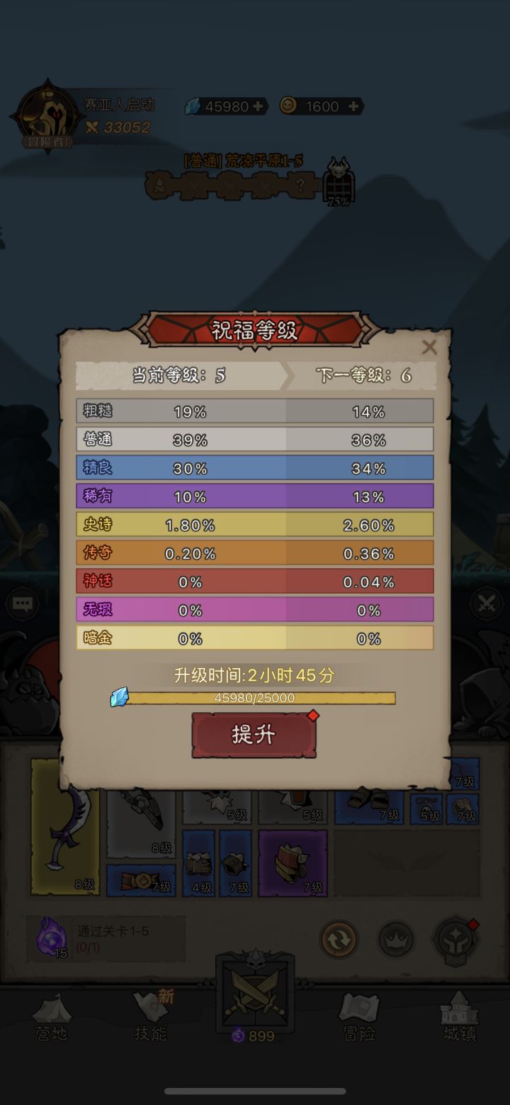 1—4级的所需就不做赘述了,创建人物后,解锁祝福,然后有5分钟的时间,不用加速,把礼包兑换了,足够升级加速到5级了
