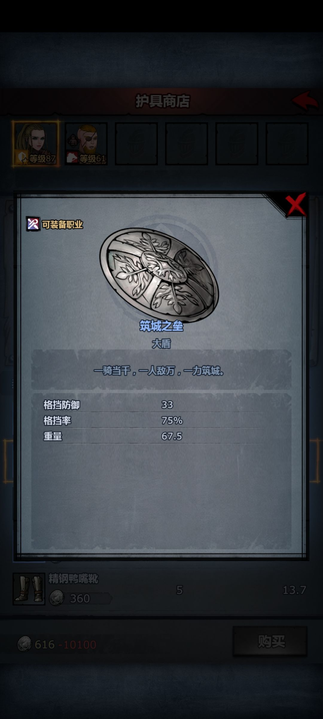 盾牌:筑城之垒(希尔信赖),赫雷斯特的守护(铁匠铺5级,希尔友善)