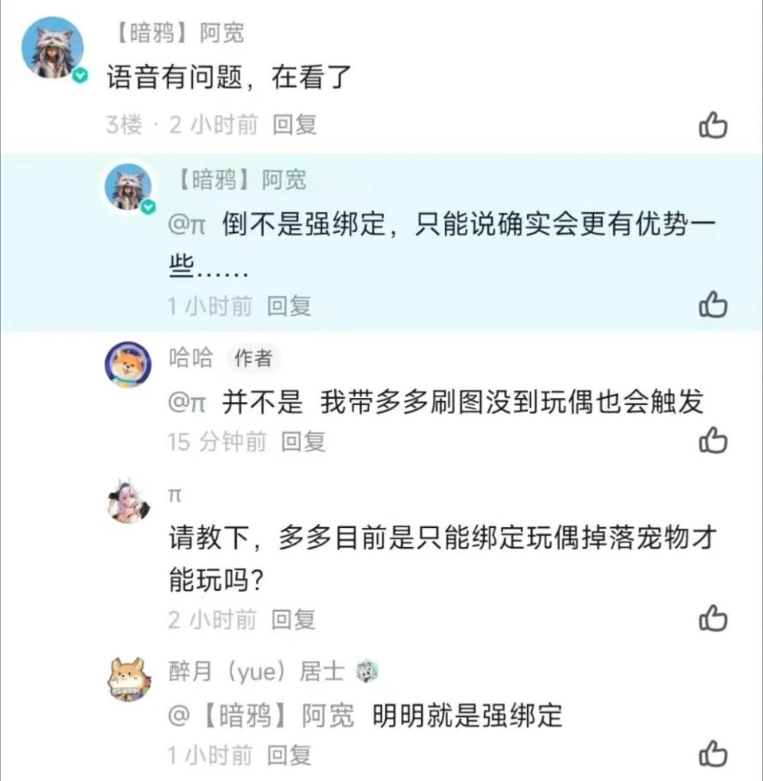 论坛也有人反馈罗盘宠和玩偶宠高度绑定。