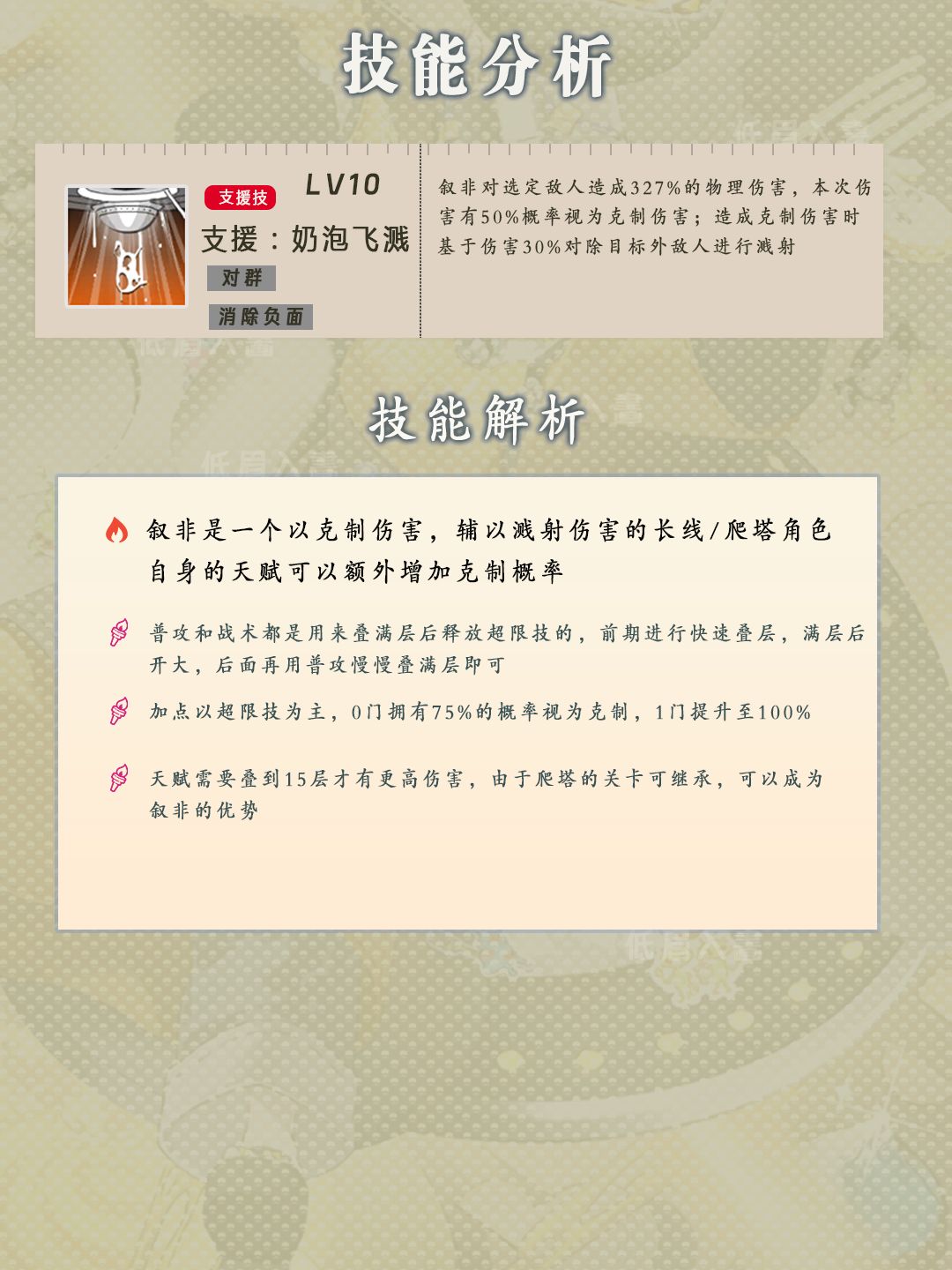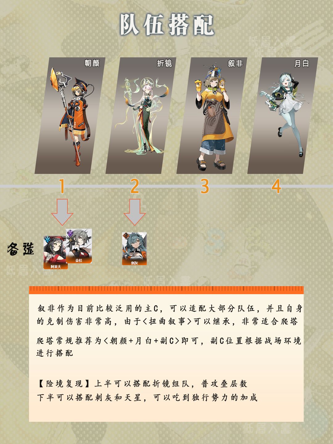 叙非是一名非常泛用的主C,主要输出以克制伤害为主