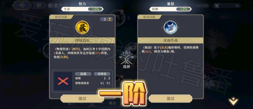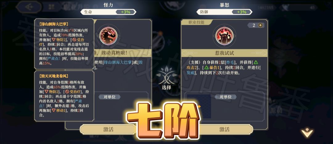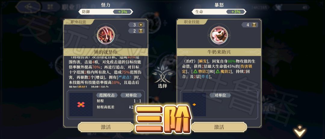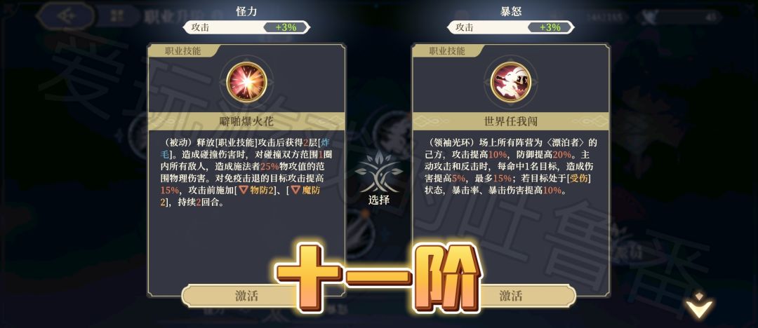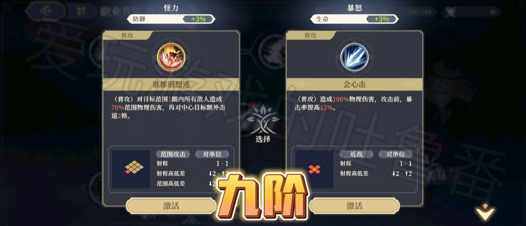 【九阶技能】左边是范围普工+击退~右边是暴击率,但是黎各其实不缺暴击率。