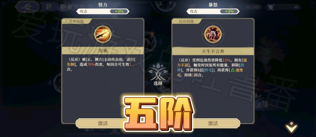 【五阶技能】这个也没啥争议,肯定选右边,特色强力不屈!