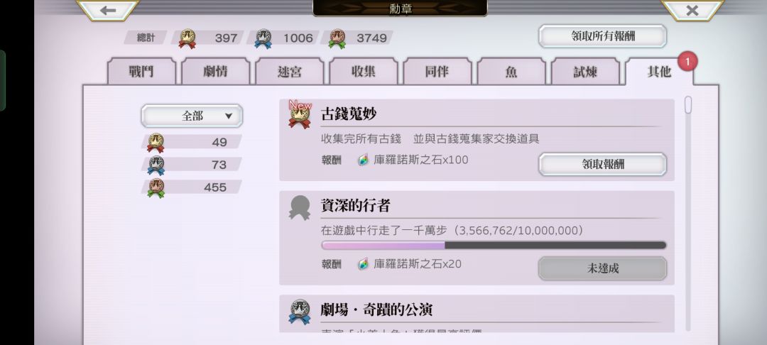 找完50个古钱拿成就: