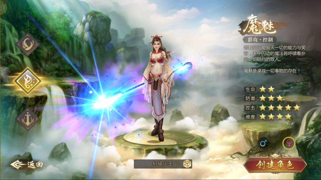第二个就是魔魅,魔魅也分两种,一种是御火型魔魅,主修以火为武器的魔法攻击技能,对目标造成强大魔法伤害,一种是冰控型魔魅,主修以冰为武器的魔法技能,降低目标的活跃性和提高自身的灵活度,同时拥有高伤害的攻击技能。