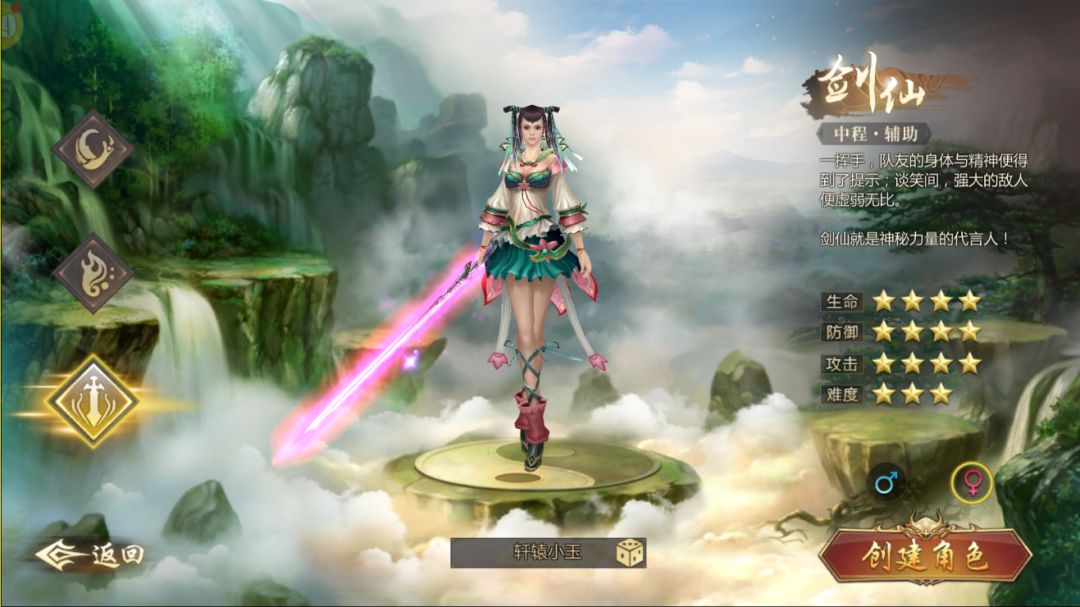 最后就是剑仙,同样也是两种,一种是神知型剑仙,主修治疗技能,团队最好的医生和后援。一种是暗灵型剑仙,主修破坏法术,降低目标的魔法和物理攻击力,约束目标行为。