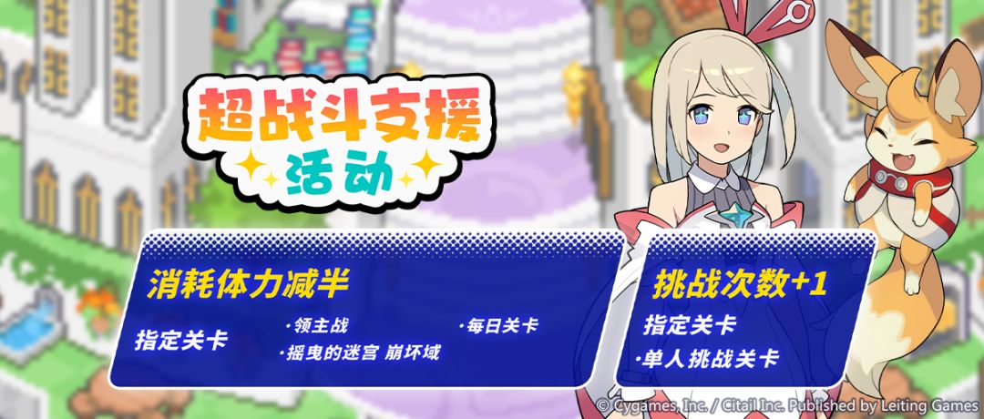 活动期间特定关卡体力消耗减半,每天「单人挑战关卡」挑战次数增加1次!
