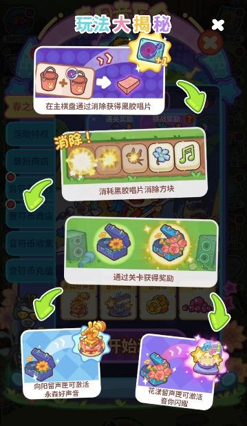 1️⃣主棋盘生成新物品时(包括母工具产生新物品&在棋盘上合成新物品)有概率生成携带黑胶唱片的新物品。将新物品合成或提交任务后,获得道具物品黑胶唱片,可用于参加春日音乐会;