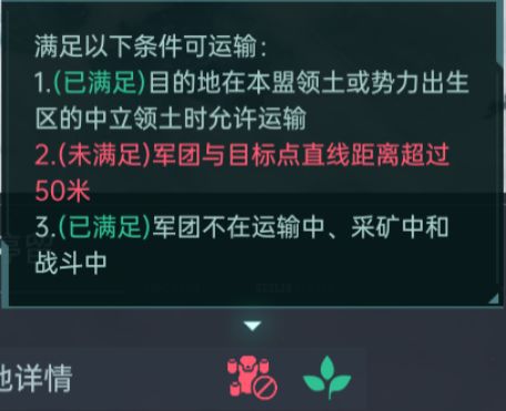 首先目的地得是己方领土,或者中立领土,不可以直接降落在敌方领土,直接“飞龙骑脸”其次军团必须脱战才能启动运输最后就是目的地与军团当前位置的直线距离超过50公里才能触发