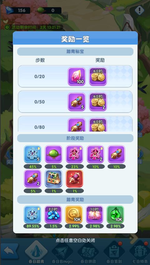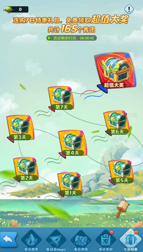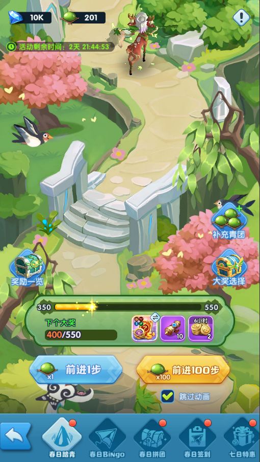 🌱春日踏青:活动期间,消耗青团前进,每前进1步即可获得相应奖励,到达特定位置可获得丰厚大奖!