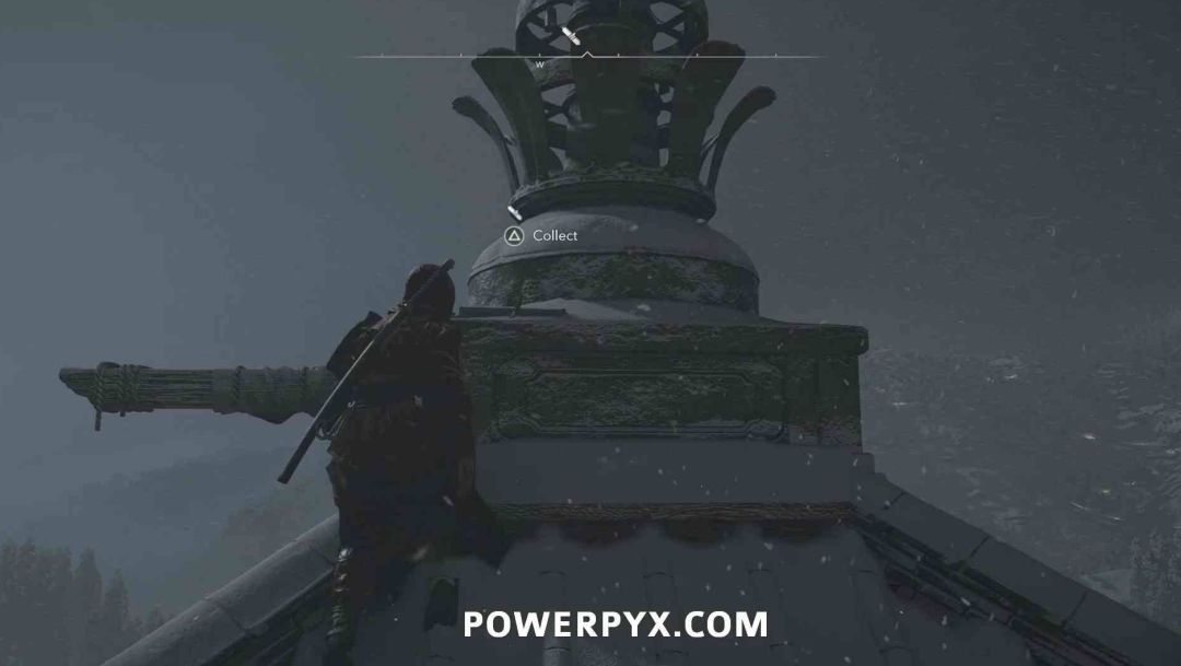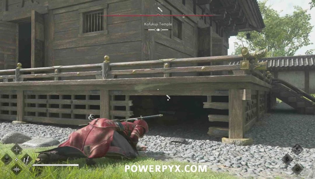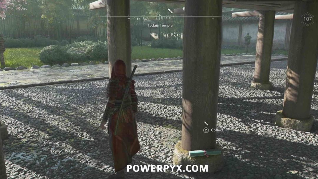 第二个卷页在寺院西南侧的建筑下方,需要爬进建筑底部才能拿到。