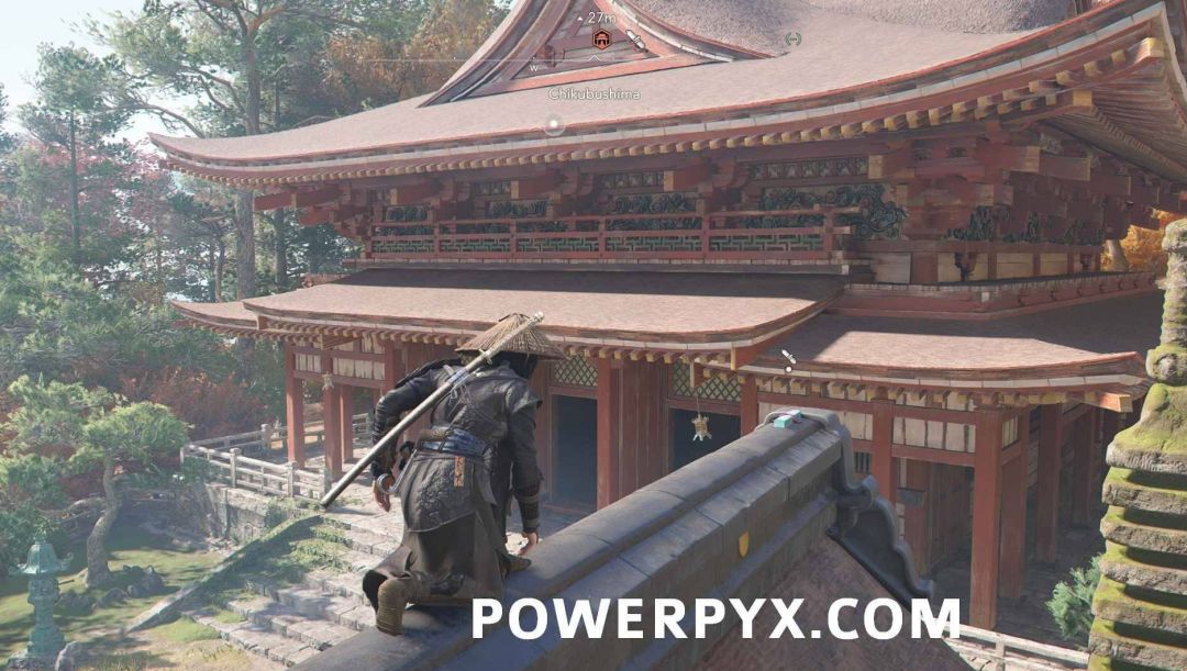 位于琵琶湖。第一个卷页在寺院建筑东侧的小神龛顶上。