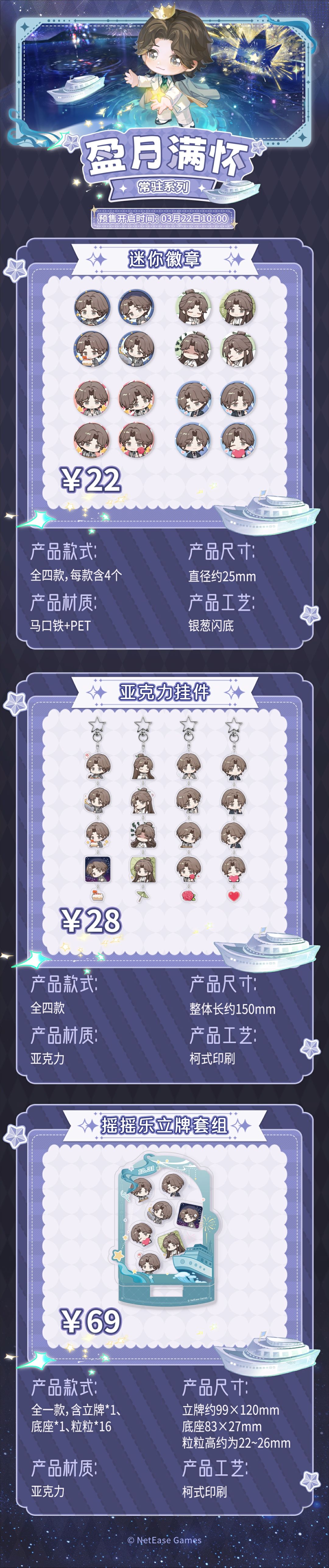 ✦盈月满怀:马口铁徽章、迷你徽章套组、亚克力挂件、摇摇乐立牌套组、桌面立牌