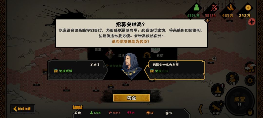 这个剧本挺有意思,开局就能招邓绥、蔡伦、张衡三个名臣。听别人说带许复点他技能会变成白城结束不了。安世高现在也有bug招不了