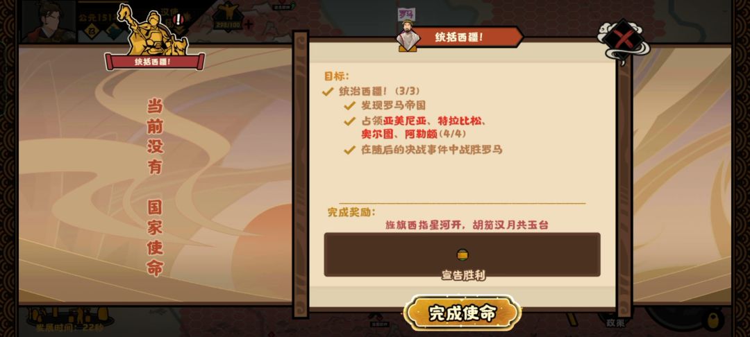 这结局符合两边谁都灭不掉谁。保护西域怎么到亚美尼亚去了,我也不知道都是为了自卫被迫打的。