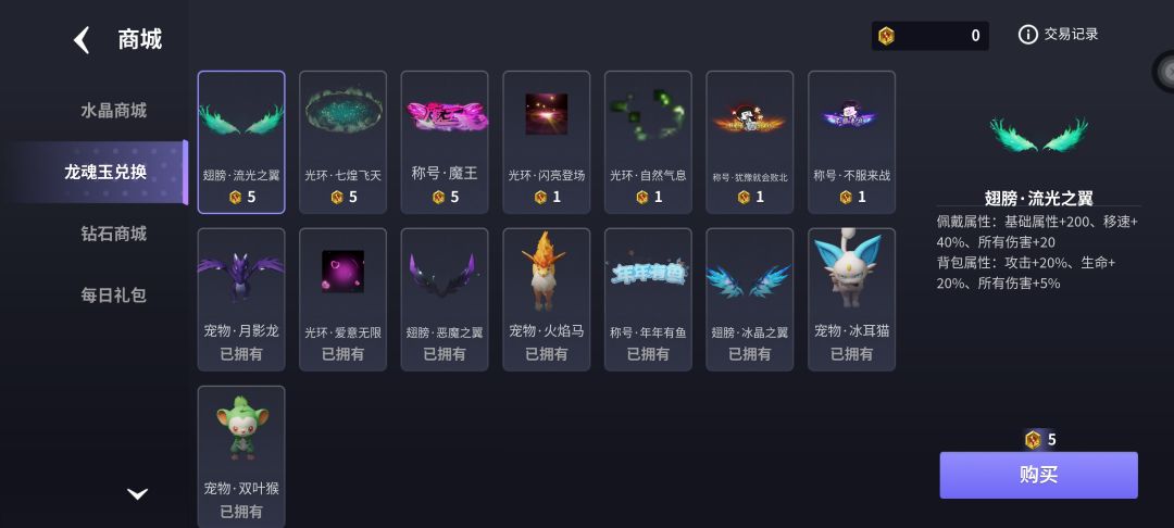 龙魂玉:龙魂玉商城兑换强力装备,包括称号,光环,翅膀,宠物。