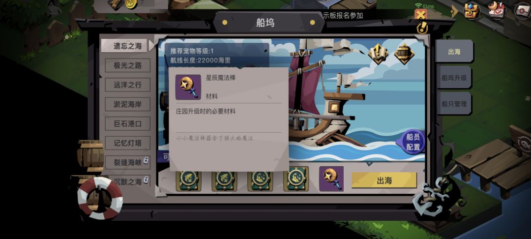 每天记得收一次,刚才材料可以在家园门口哪儿卖成航海币,买星卡,升级星卡需要用