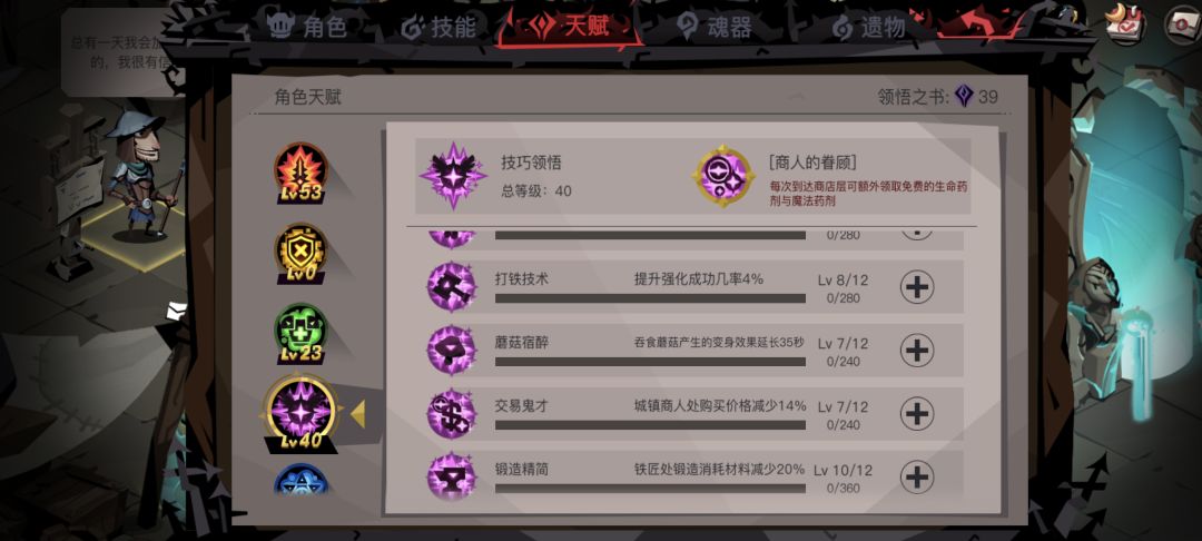 个人习惯,为了方便跑图,可以优先把飞毛腿,点到1000加上公会天赋的1000差不多满移速