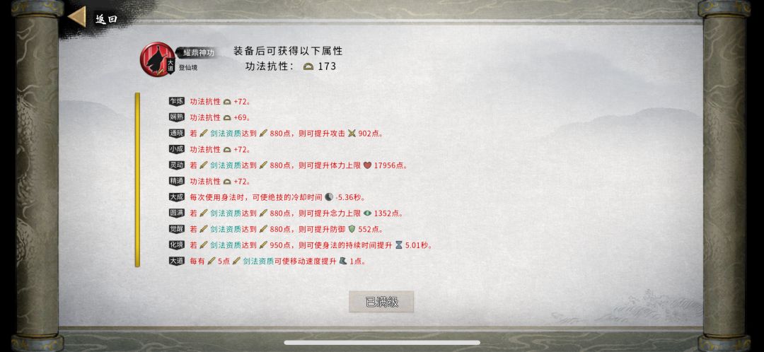 莲花剑已然大成,全心法完美词条,全红词条。