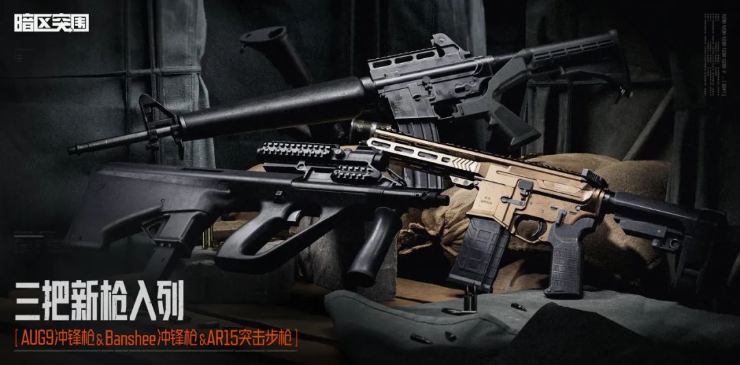 火力全开,新枪登场!AUG9冲锋枪、Banshee冲锋枪、AR15突击步枪,三款新枪强势上架,满足你的多样化战斗需求!
